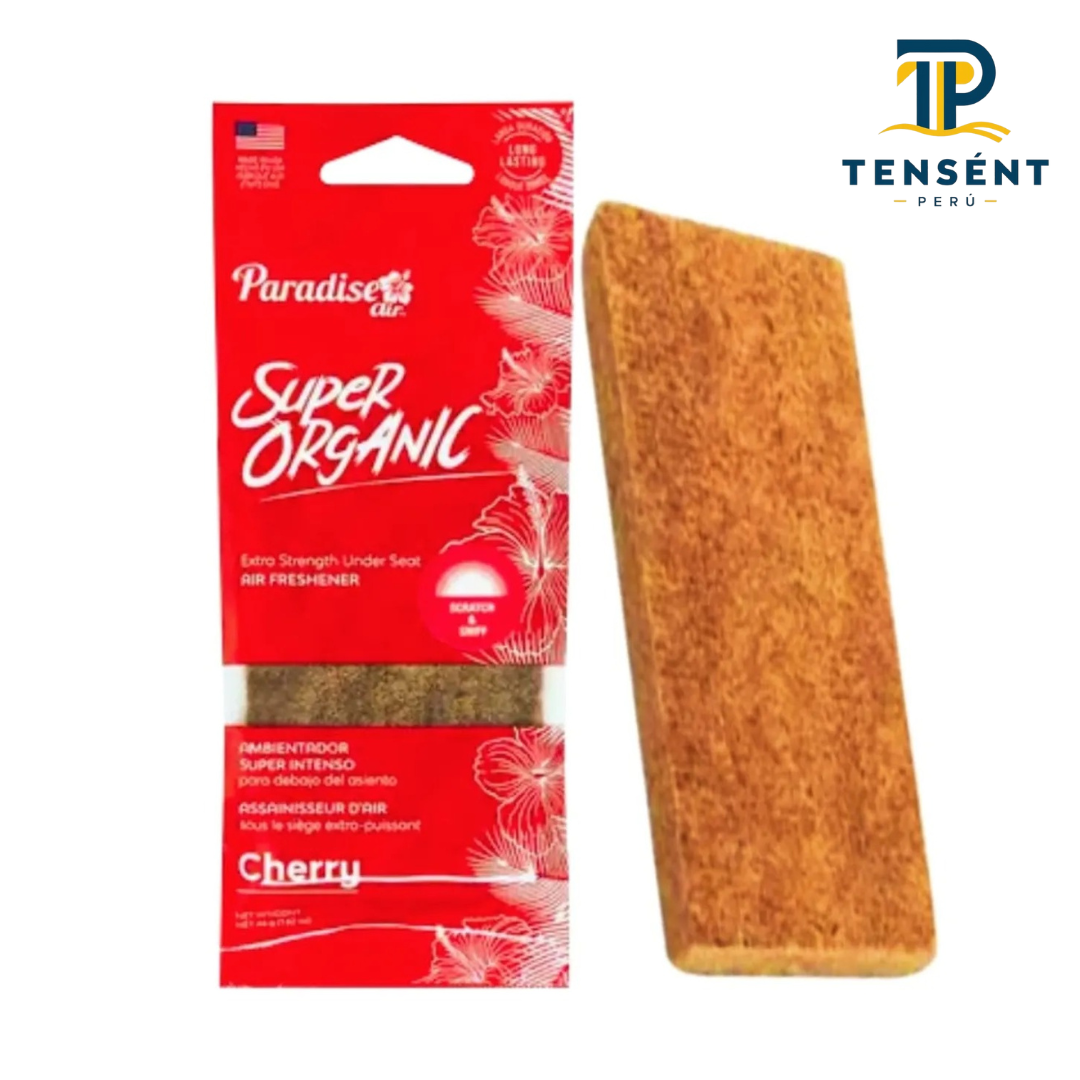 Ambientador Cherry Paradise Cuadrado Super Organic transforma cualquier ambiente en un aroma dulce, fresco y agradable que se siente desde el primer momento ✨